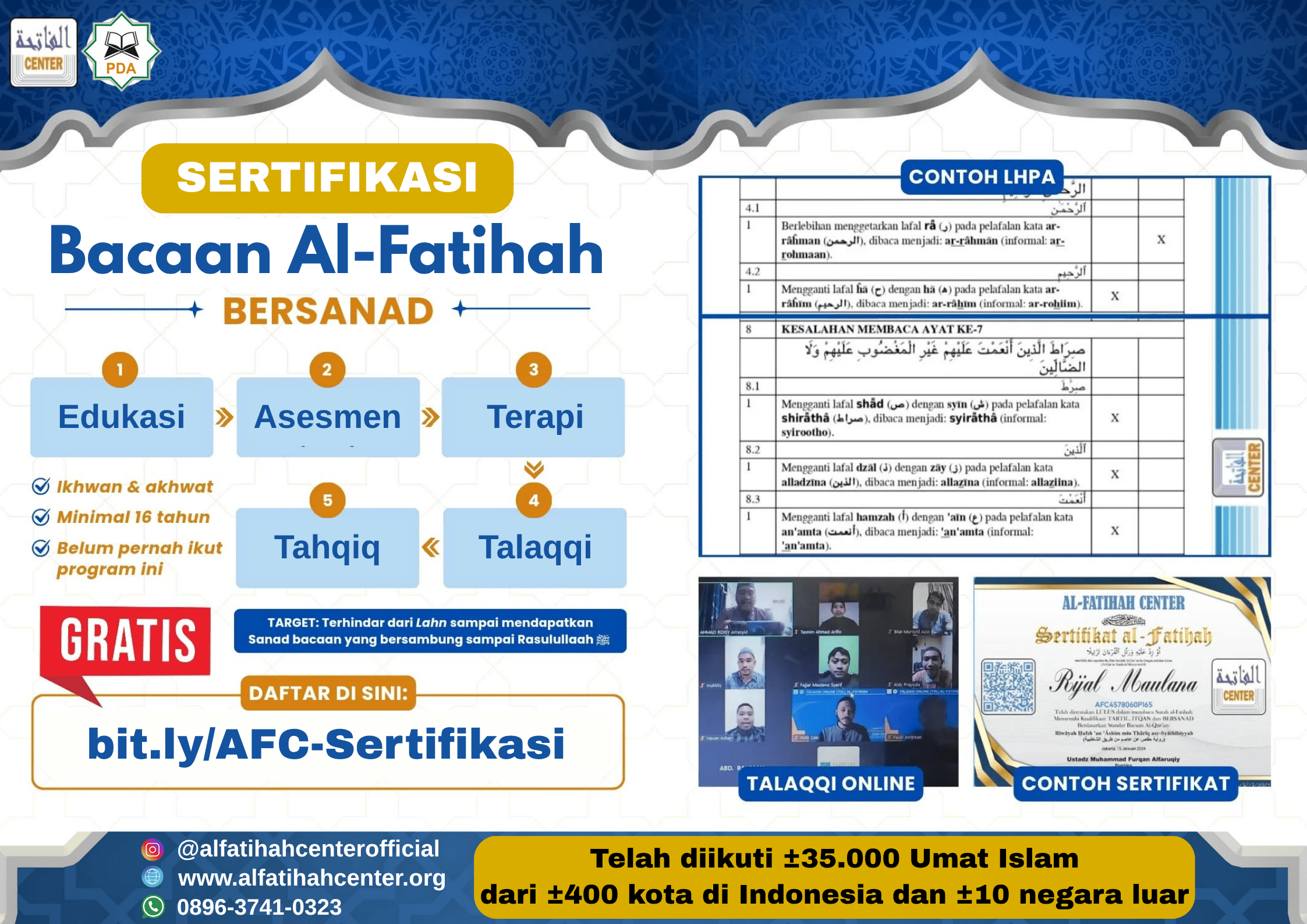 Sertifikasi Bacaan Al-Fatihah adalah program utama layanan dakwah Al-Fatihah Center (AFC).